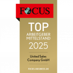 Nach den Auszeichnungen zum TOP Arbeitgeber Mittelstand 2021/2022 und 2023, erhielt die United Sales Company GmbH nun auch die Auszeichnung zum „TOP Arbeitgeber Mittelstand für 2025“.