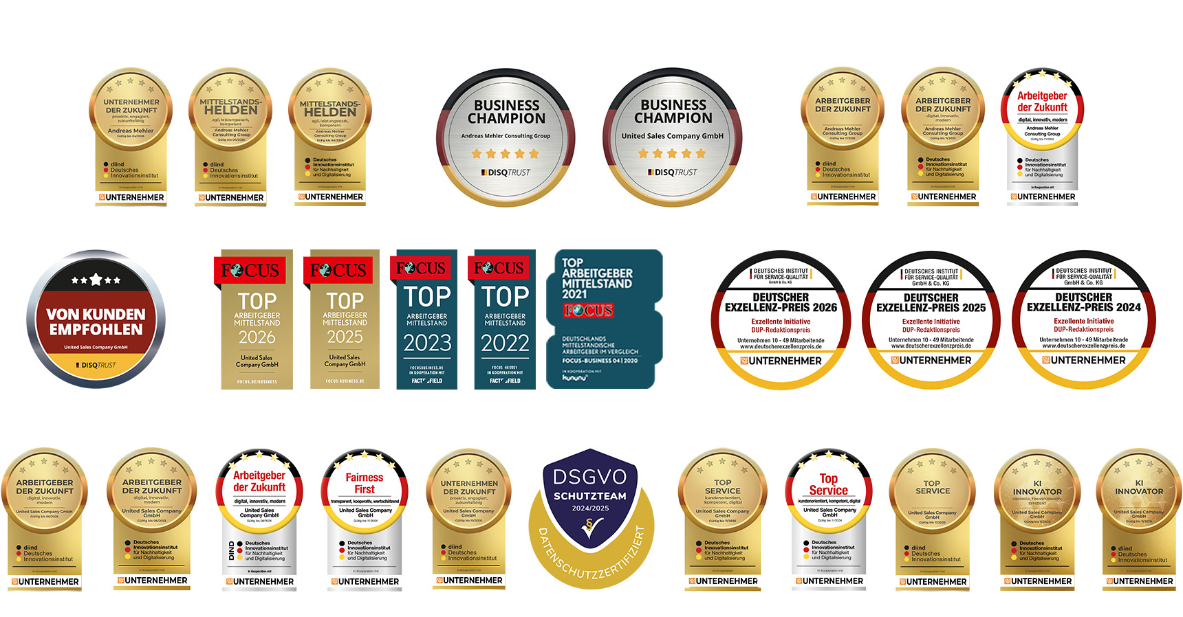 Auszeichnungen der Andreas Mehler Consulting Group und unserer Partner United Sales Company GmbH
