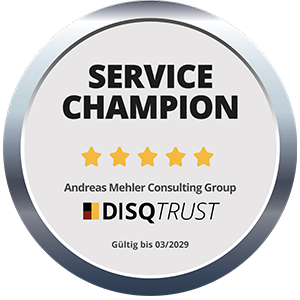 Düsseldorf, den 12.02.2026 – Die Andreas Mehler Consulting Group (AMCG) wurde für ihre herausragende Servicequalität mit dem Qualitätssiegel von DISQTrust ausgezeichnet. Die Auszeichnung basiert auf einer mehrstufigen Erhebung durch das Deutsche Institut für Service-Qualität (DISQ), das seit fast zwei Jahrzehnten Unternehmen mit überdurchschnittlicher Kundenorientierung identifiziert.